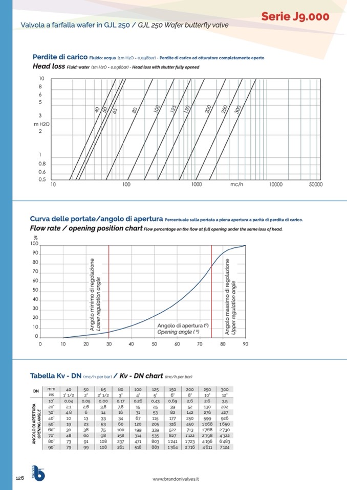 Fluid: water (1m H2O = 0,098bar) - Head loss with shutter fully opened