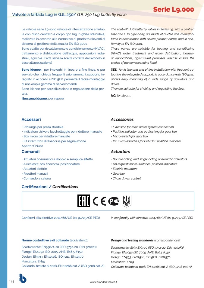 The shut-off LUG butterfly valves in Series L9, with a centred