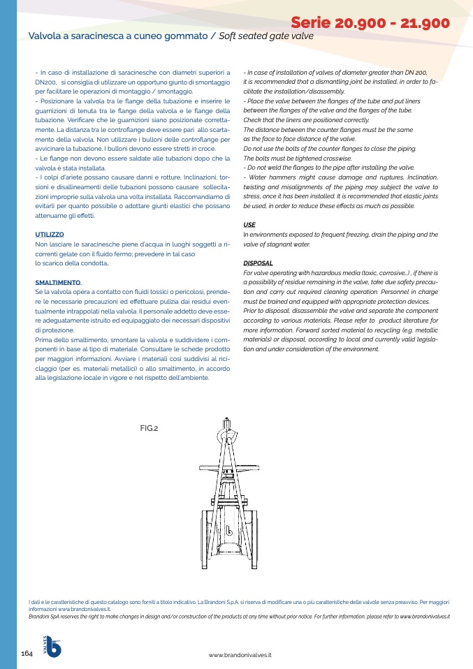 Brandoni SpA reserves the right to make changes in design and/or construction of the products at any time without prior notice. For further information, please refer to www.brandonivalves.it