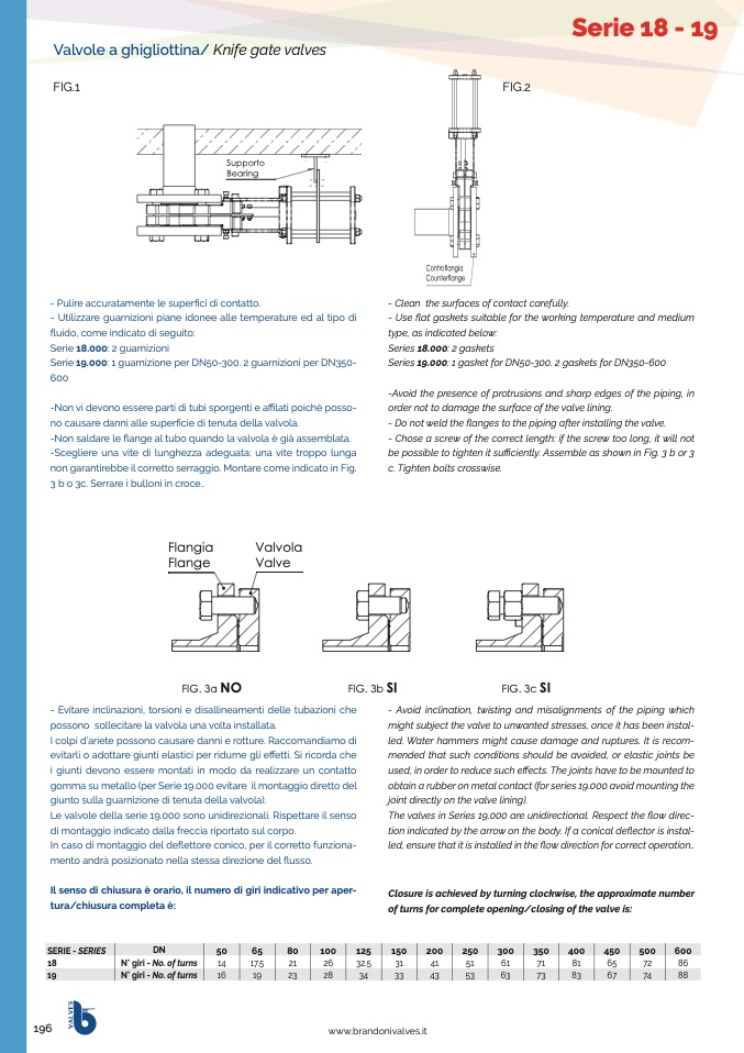 Le valvole della serie 19.000 sono unidirezionali. Rispettare il senso