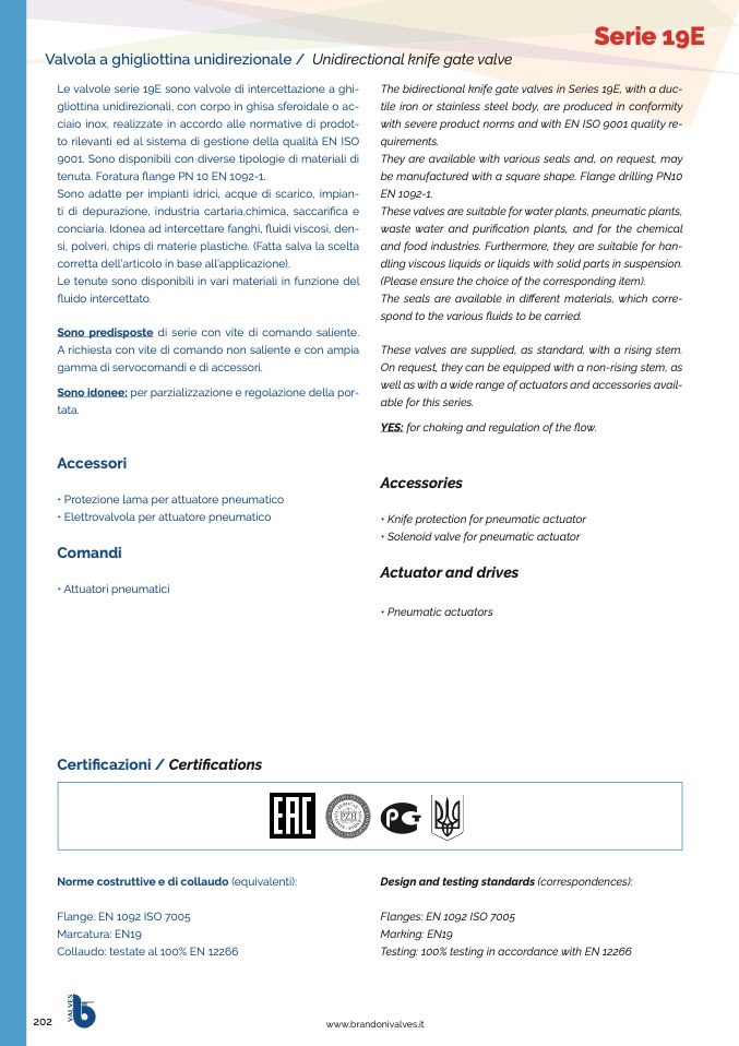 The bidirectional knife gate valves in Series 19E, with a duc-