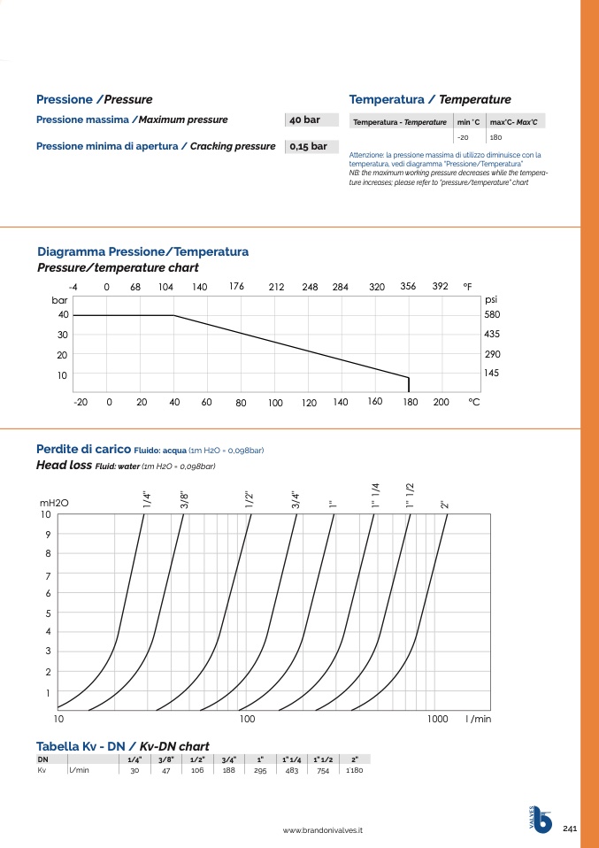 NB: the maximum working pressure decreases while the tempera-