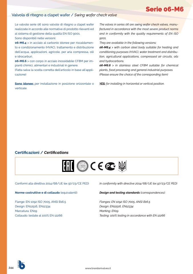 Le valvole serie 06 sono valvole di ritegno a clapet wafer