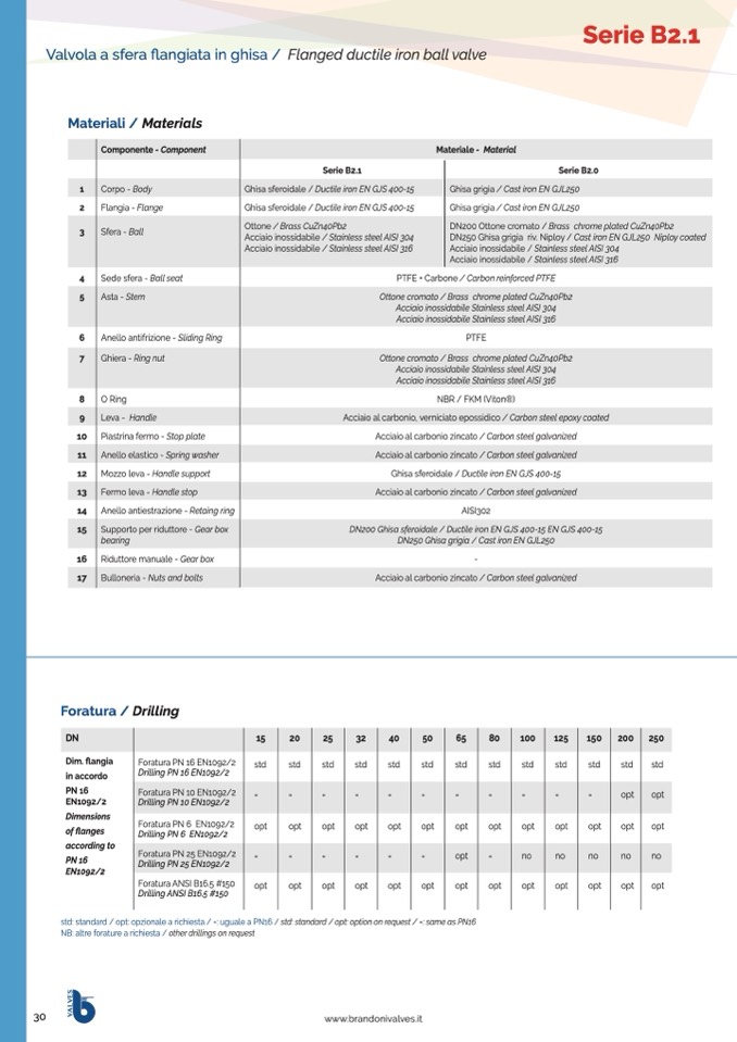 std: standard / opt: opzionale a richiesta / =: uguale a PN16 / std: standard / opt: option on request / =: same as PN16
