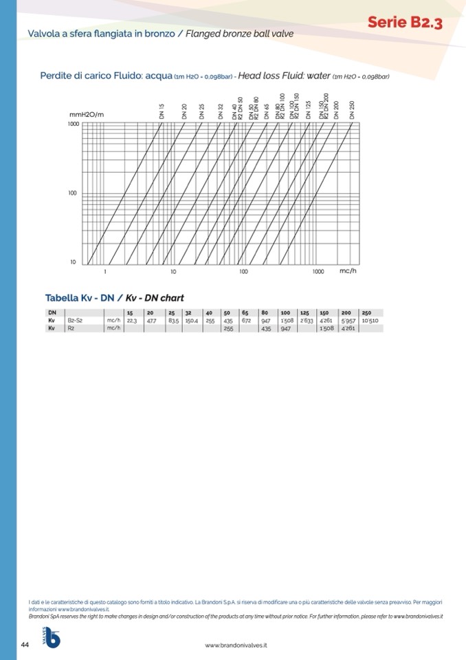 I dati e le caratteristiche di questo catalogo sono forniti a titolo indicativo. La Brandoni S.p.A. si riserva di modificare una o più caratteristiche delle valvole senza preavviso. Per maggiori