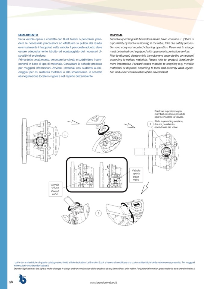 Brandoni SpA reserves the right to make changes in design and/or construction of the products at any time without prior notice. For further information, please refer to www.brandonivalves.it