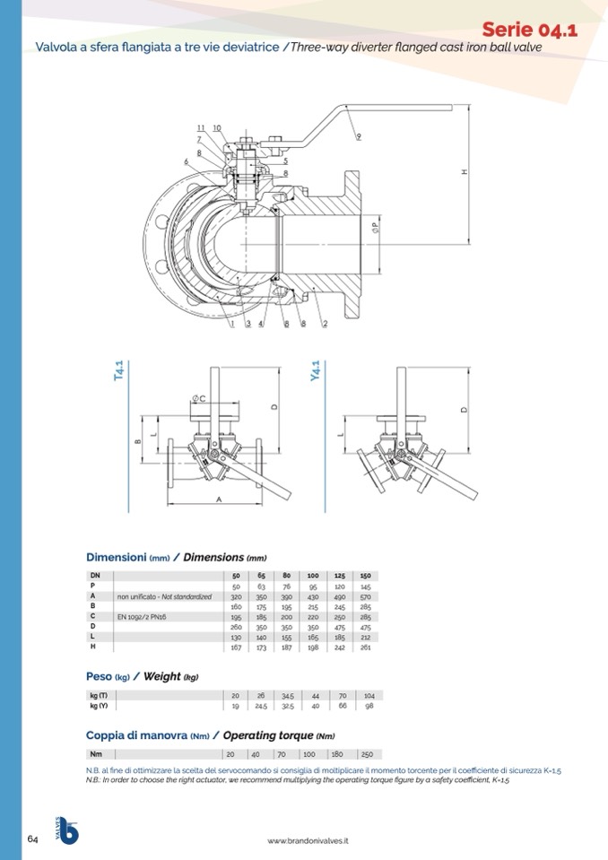 N.B.: In order to choose the right actuator, we recommend multiplying the operating torque figure by a safety coefficient, K=1.5