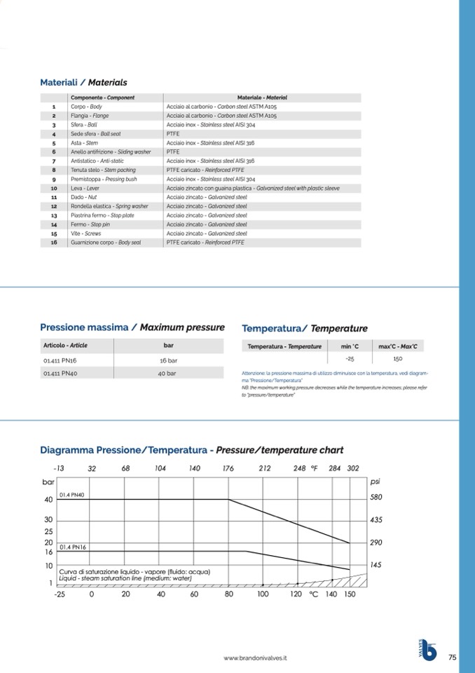 Attenzione: la pressione massima di utilizzo diminuisce con la temperatura, vedi diagram-