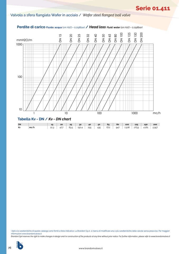 I dati e le caratteristiche di questo catalogo sono forniti a titolo indicativo. La Brandoni S.p.A. si riserva di modificare una o più caratteristiche delle valvole senza preavviso. Per maggiori