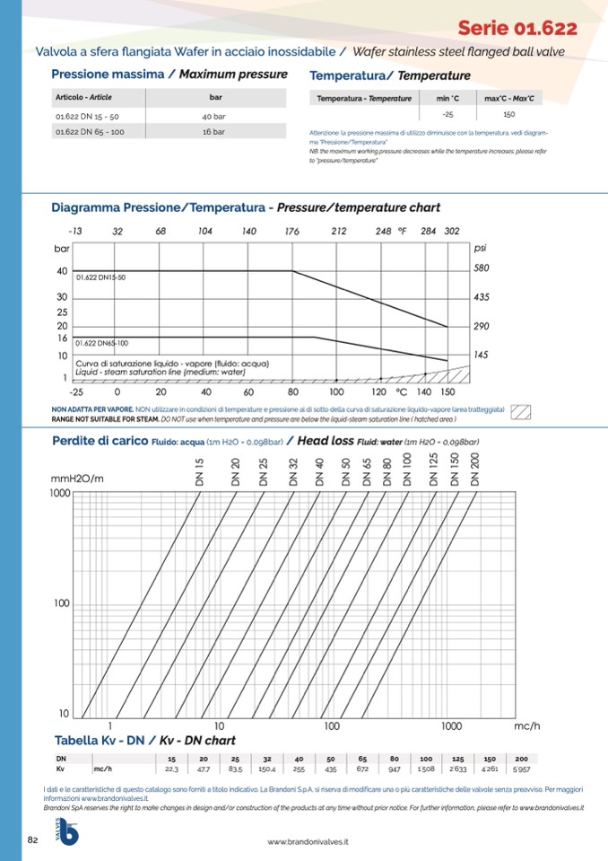 I dati e le caratteristiche di questo catalogo sono forniti a titolo indicativo. La Brandoni S.p.A. si riserva di modificare una o più caratteristiche delle valvole senza preavviso. Per maggiori