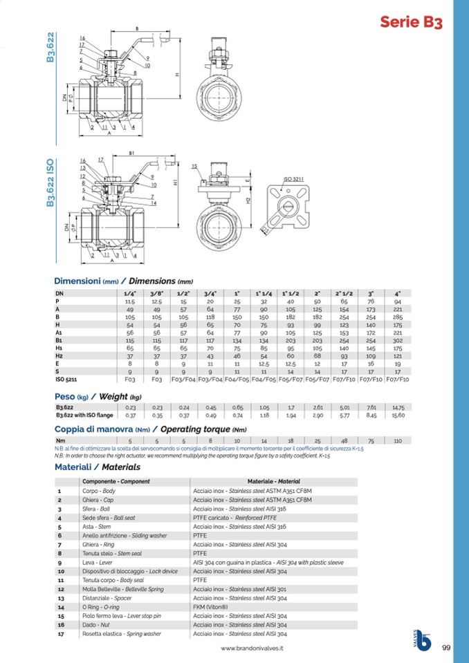 N.B.: In order to choose the right actuator, we recommend multiplying the operating torque figure by a safety coefficient, K=1.5