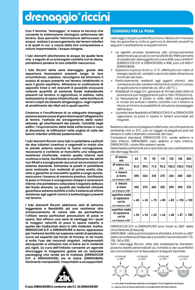 I tubi drenanti Riccini abbinano doti di estrema