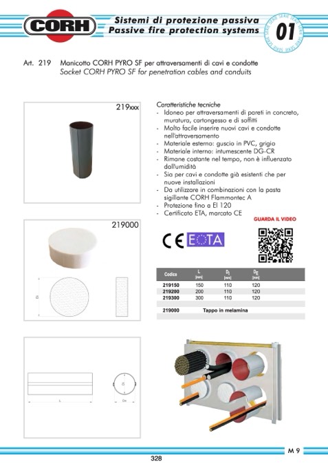 Manicotto CORH PYRO SF per attraversamenti di cavi e condotte
