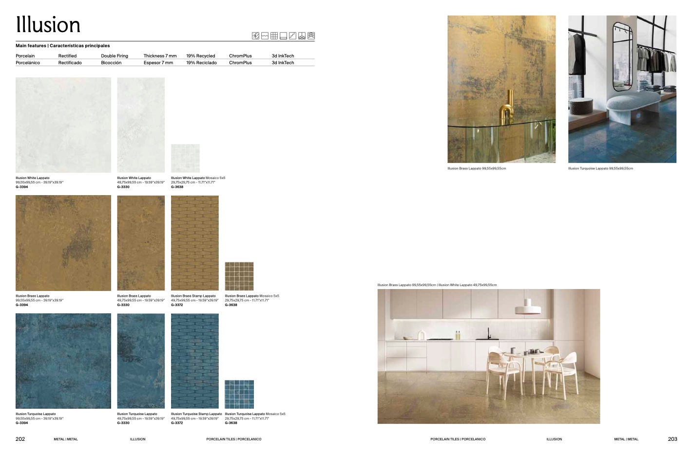 Illusion Brass Lappato 99,55x99,55cm | Illusion White Lappato 49,75x99,55c