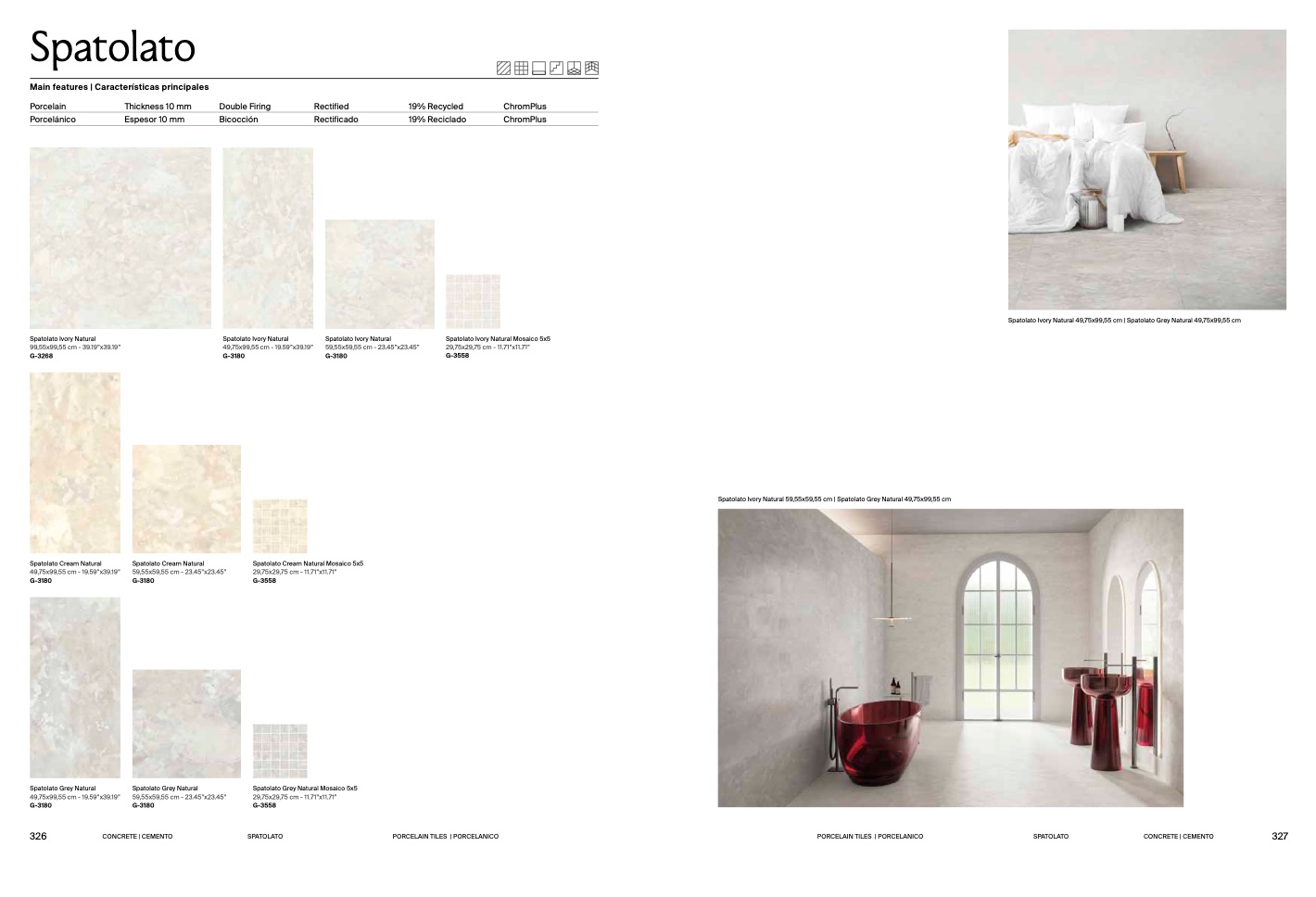 Spatolato Ivory Natural 59,55x59,55 cm | Spatolato Grey Natural 49,75x99,55 c