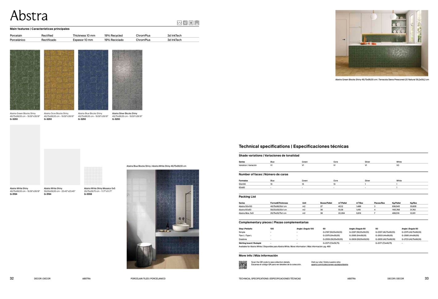 Abstra Green Blocks Shiny 49,75x99,55 cm | Terracota Siena Prescored-20 Natural 59,2x59,2 cm