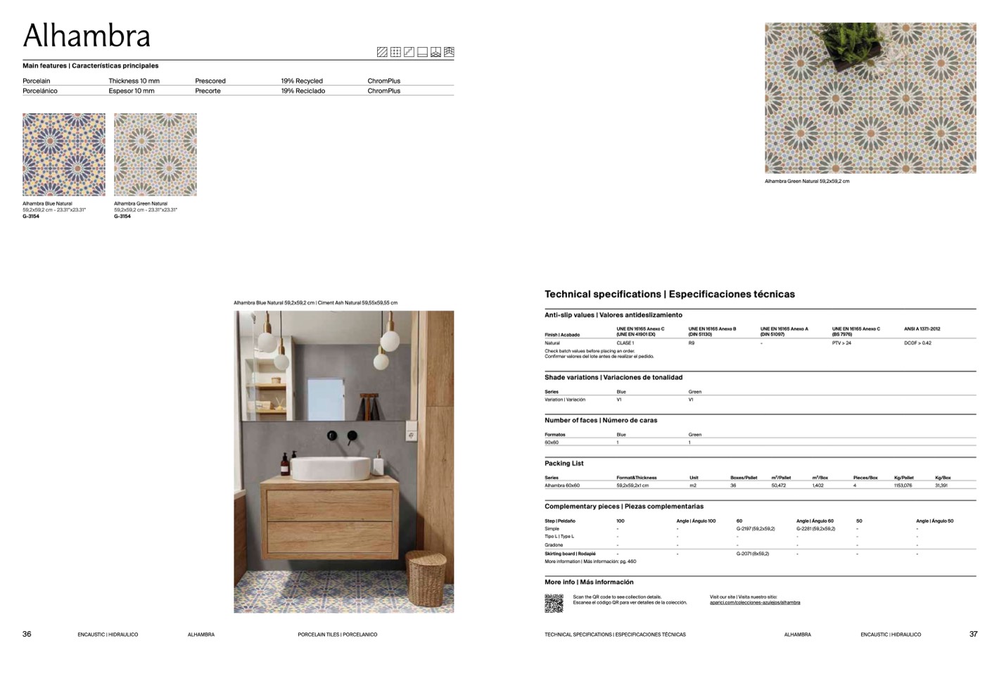 Alhambra Blue Natural 59,2x59,2 cm | Ciment Ash Natural 59,55x59,55 cm