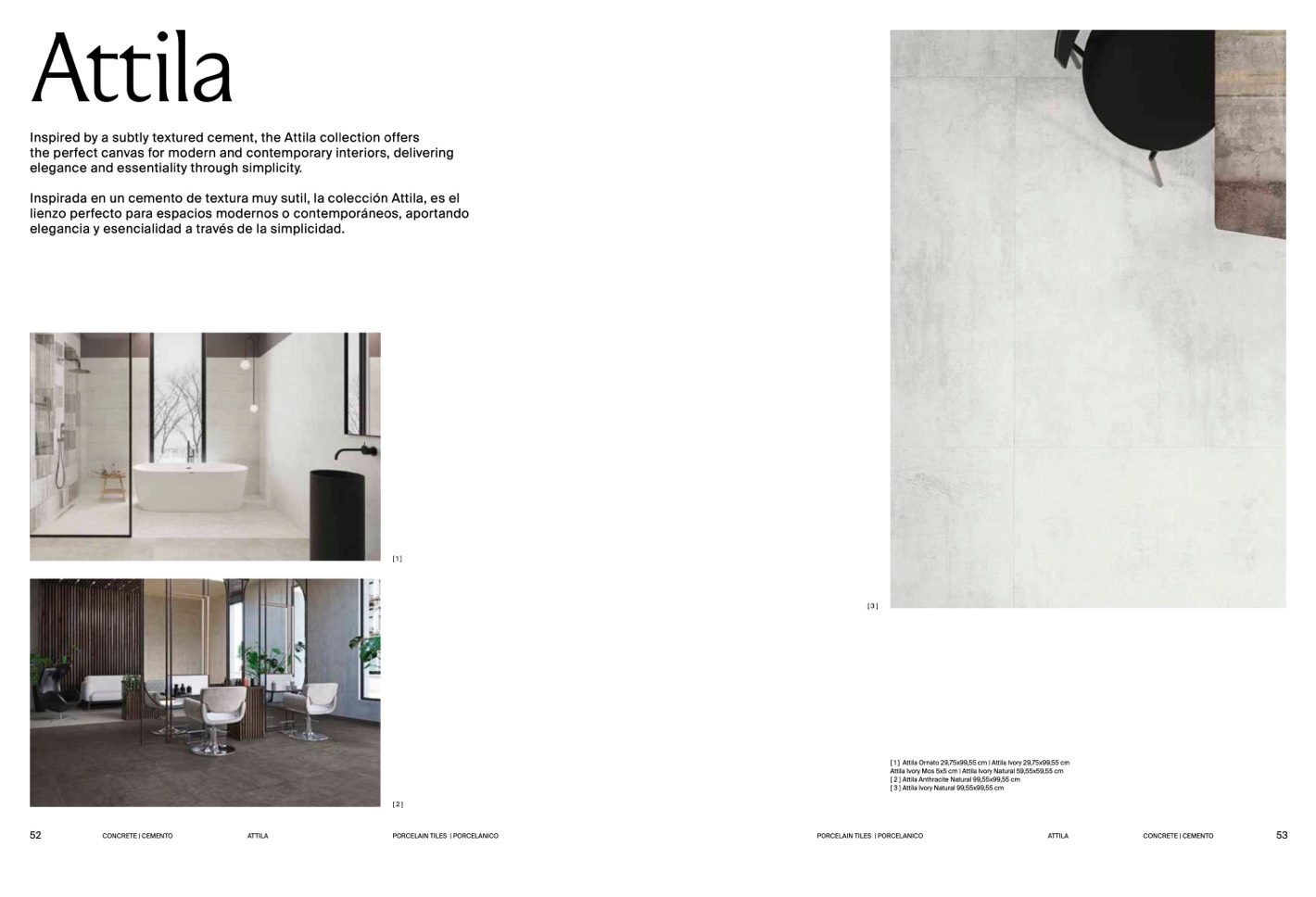 Inspirada en un cemento de textura muy sutil, la colección Attila, es e
