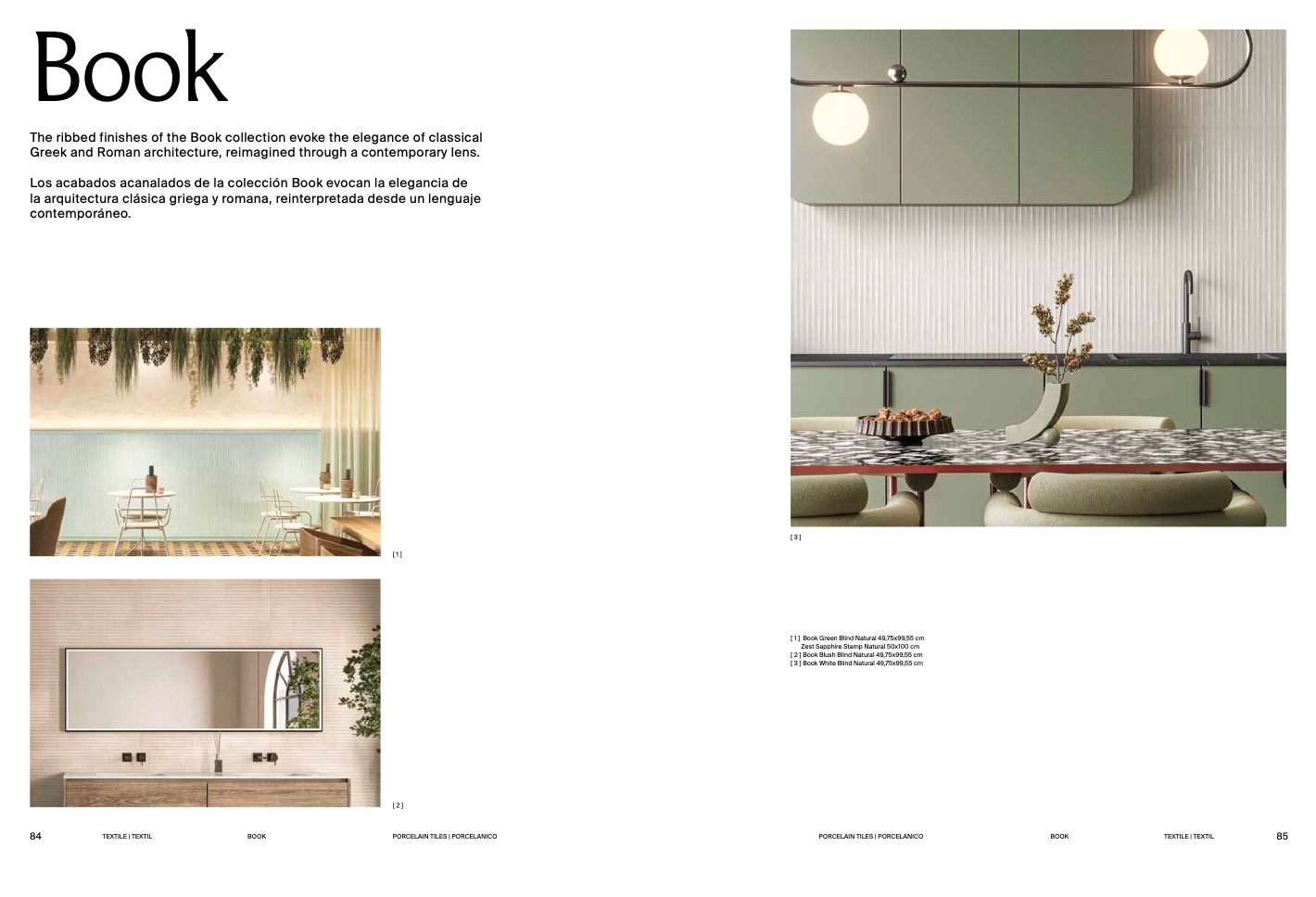 Los acabados acanalados de la colección Book evocan la elegancia d