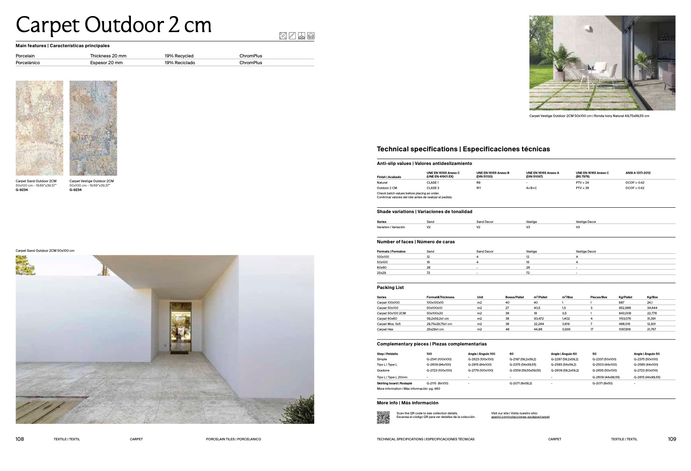 Carpet Vestige Outdoor 2CM 50x100 cm | Ronda Ivory Natural 49,75x99,55 cm