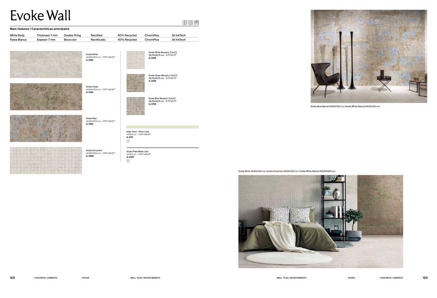 Evoke White 44,63x119,3 cm | Evoke Ornament 44,63x119,3 cm | Evoke White Natural 59,55x59,55 c