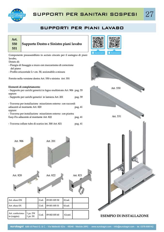 Fornito nella versione destra Art. 550 o sinistra Art. 551