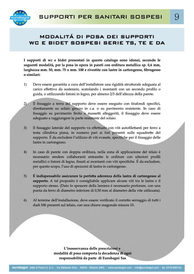 I supporti di wc e bidet presentati in questo catalogo sono idonei, secondo le