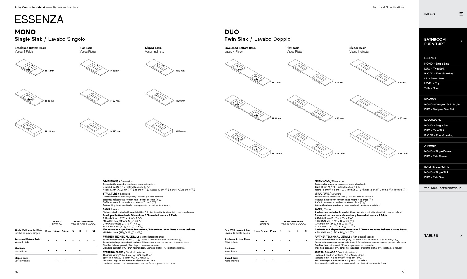 I lavabi con altezza 12 mm sono realizzati solo con fondo di partenza da 12 mm