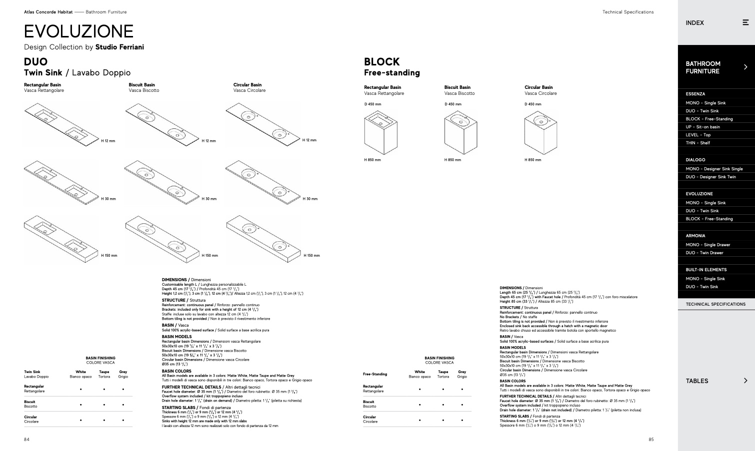 Biscuit basin Dimensions / Dimensione vasca Biscotto