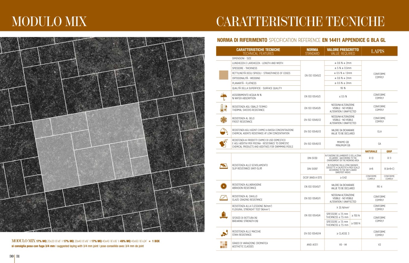 si consiglia posa con fuga 3/4 mm I suggested laying with 3/4 mm joint I pose conseillée avec 3/4 mm de joint