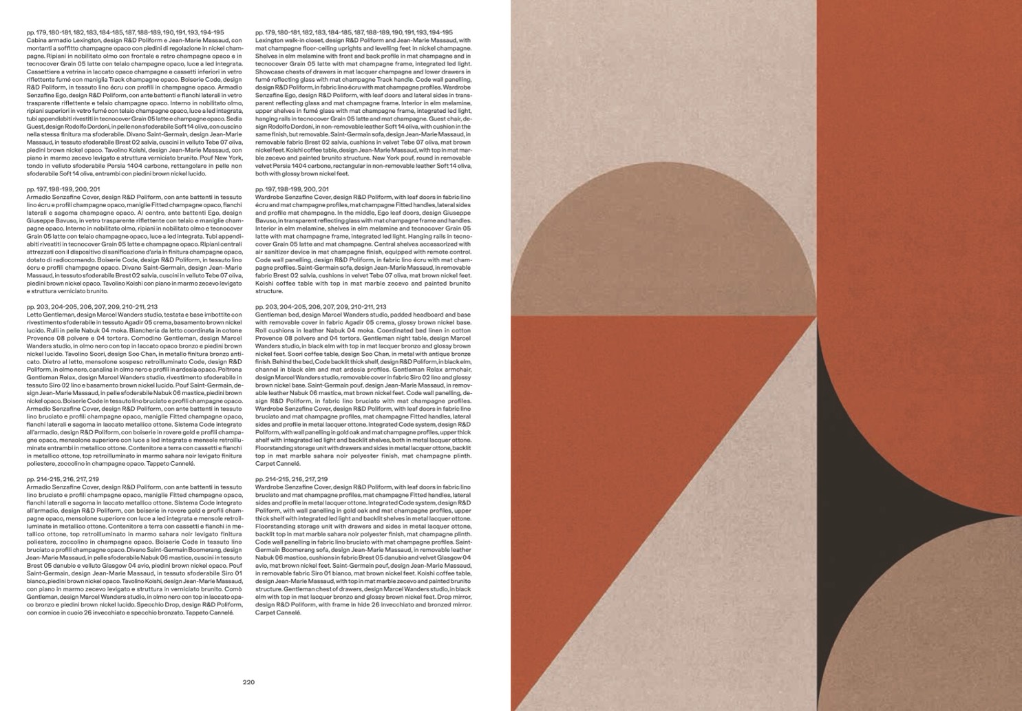 Poliform, with wall panelling in gold oak and mat champagne profiles, upper