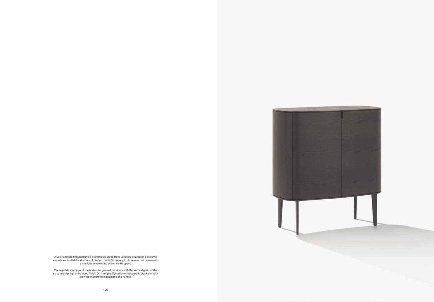 structure highlights the wood finish. On the right, Symphony sideboard in black elm with