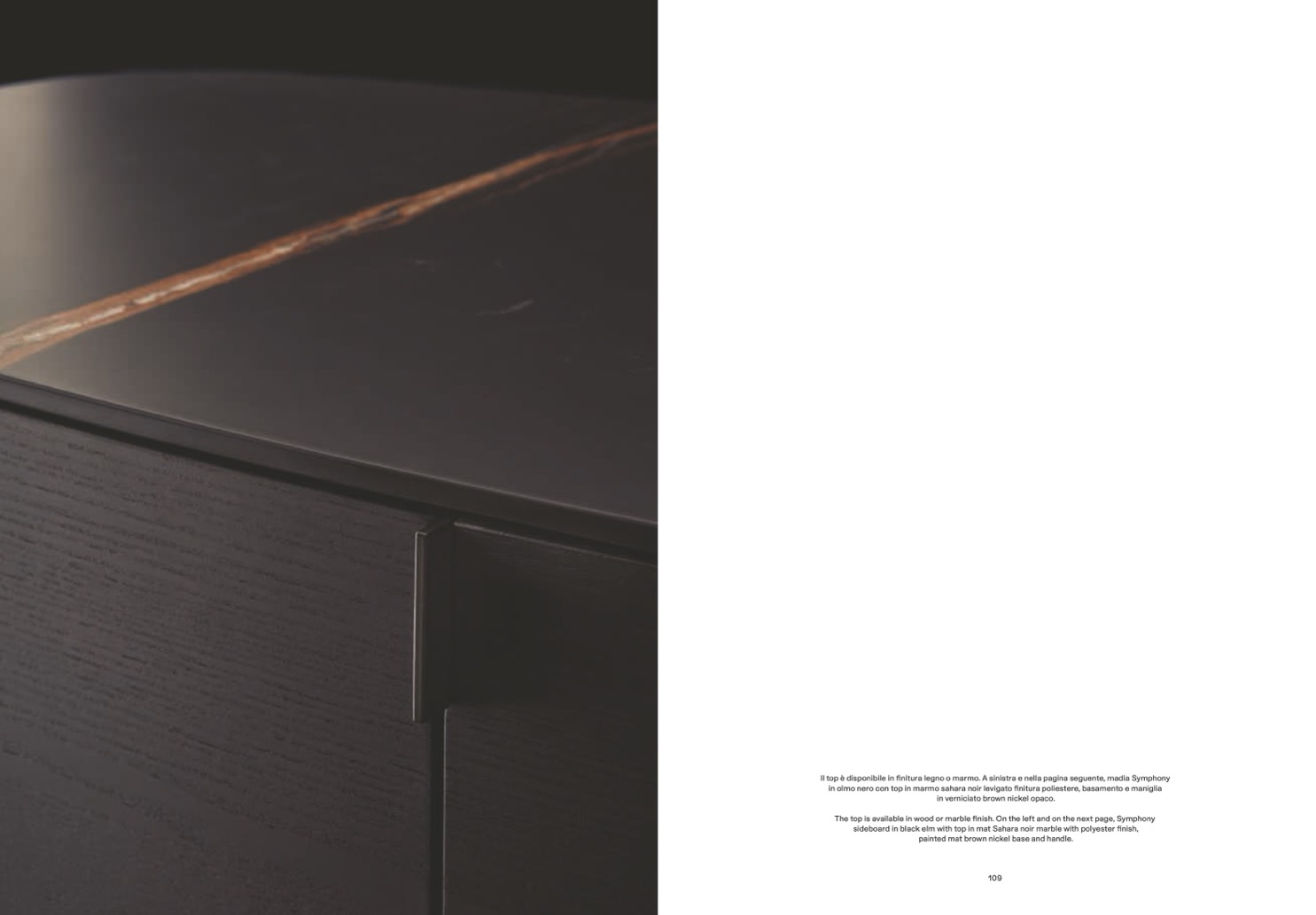 The top is available in wood or marble finish. On the left and on the next page, Symphony