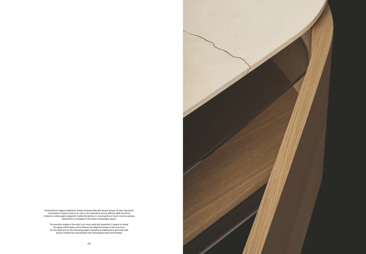 On the right and on the following pages, Symphony sideboard in gold oak with