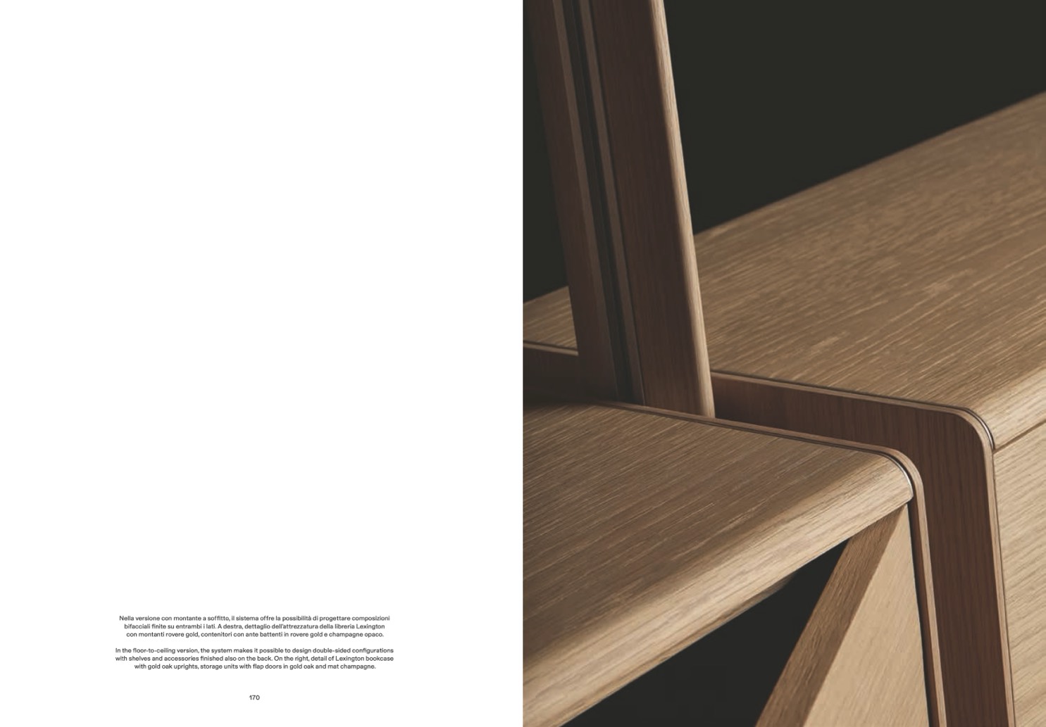 with shelves and accessories finished also on the back. On the right, detail of Lexington bookcase