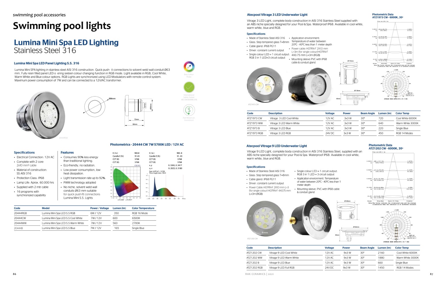 an ABS niche specially designed for your Pool & Spa. Waterproof IP68. Available in cool white,
