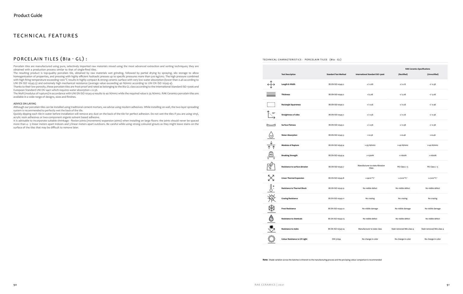 TECHNICAL CHARACTERISTICS - PorcElain TilEs (Bia - GL)