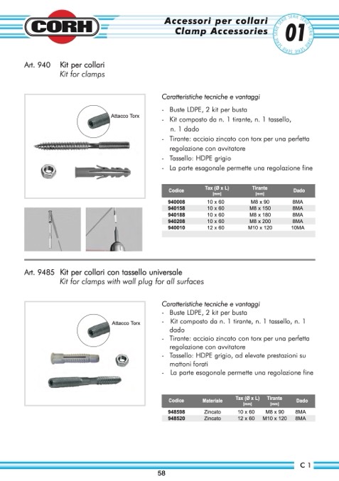 - Kit composto da n. 1 tirante, n. 1 tassello,