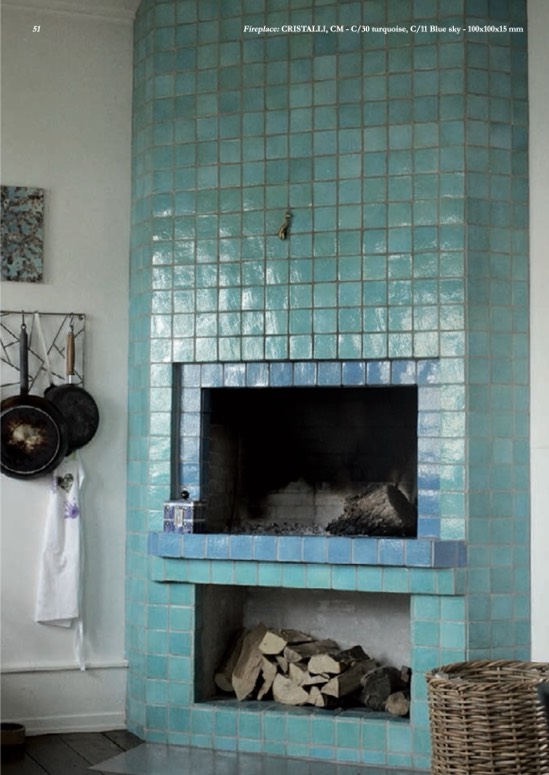 Fireplace: CRISTALLI, CM - C/30 turquoise, C/11 Blue sky - 100x100x15 mm