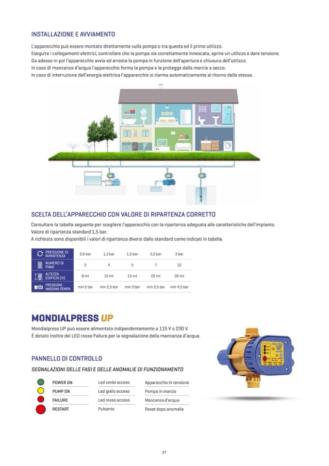 È dotato inoltre del LED rosso Failure per la segnalazione della mancanza d’acqua.