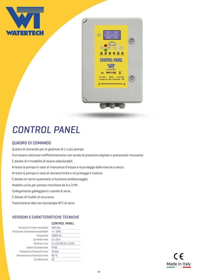 Arresta la pompa in caso di mancanza d’acqua e la protegge dalla marcia a secco.