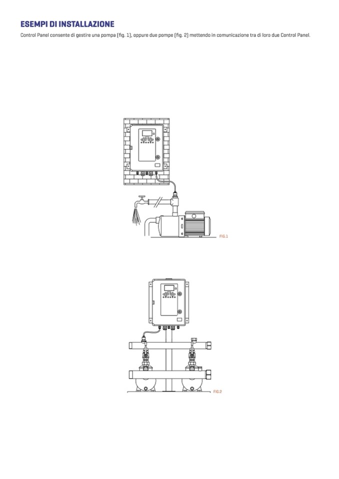 Control Panel consente di gestire una pompa (fig. 1), oppure due pompe (fig. 2) mettendo in comunicazione tra di loro due Control Panel.
