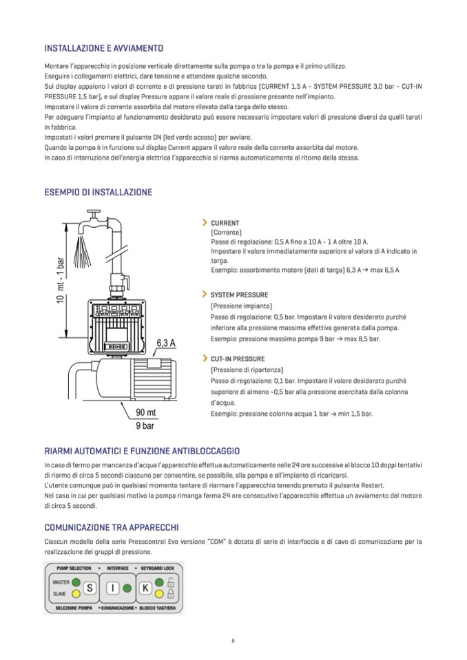 Quando la pompa è in funzione sul display Current appare il valore reale della corrente assorbita dal motore.