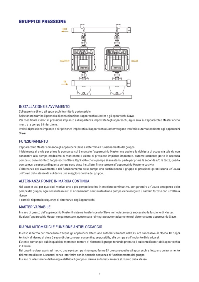 Inizialmente si avvia per prima la pompa su cui è montato l’apparecchio Master, ma qualora la richiesta di acqua sia tale da non