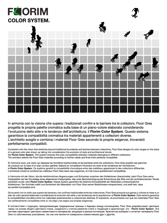 erarbeitet wurde: dem Florim Color System. Dieses System garantiert die farbliche Kompatibilität der Materialien unterschiedlicher