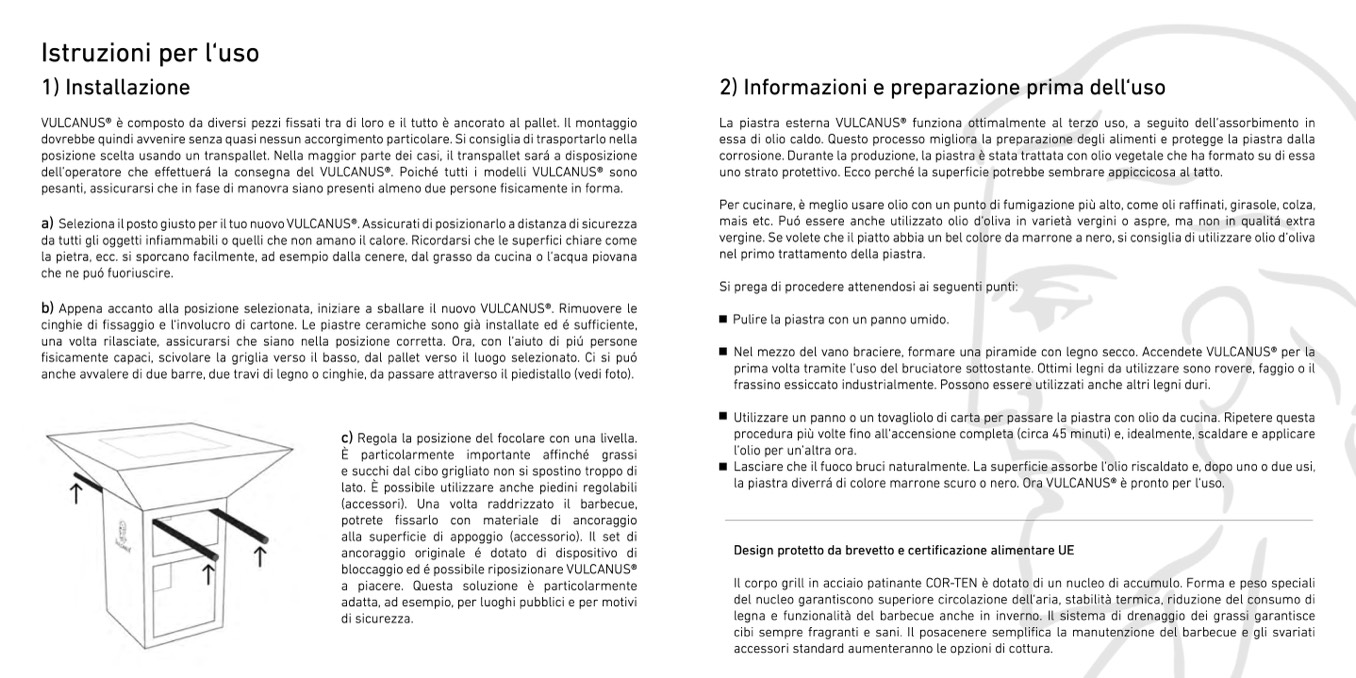 dell’operatore che effettuerá la consegna del VULCANUS®. Poiché tutti i modelli VULCANUS® sono