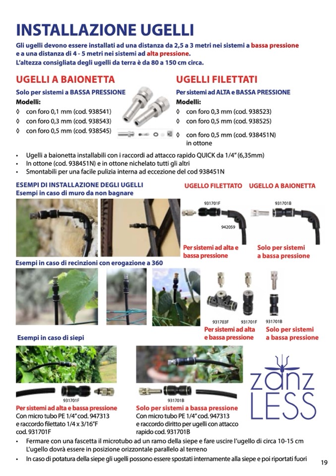 Gli ugelli devono essere installati ad una distanza da 2,5 a 3 metri nei sistemi a bassa pressione