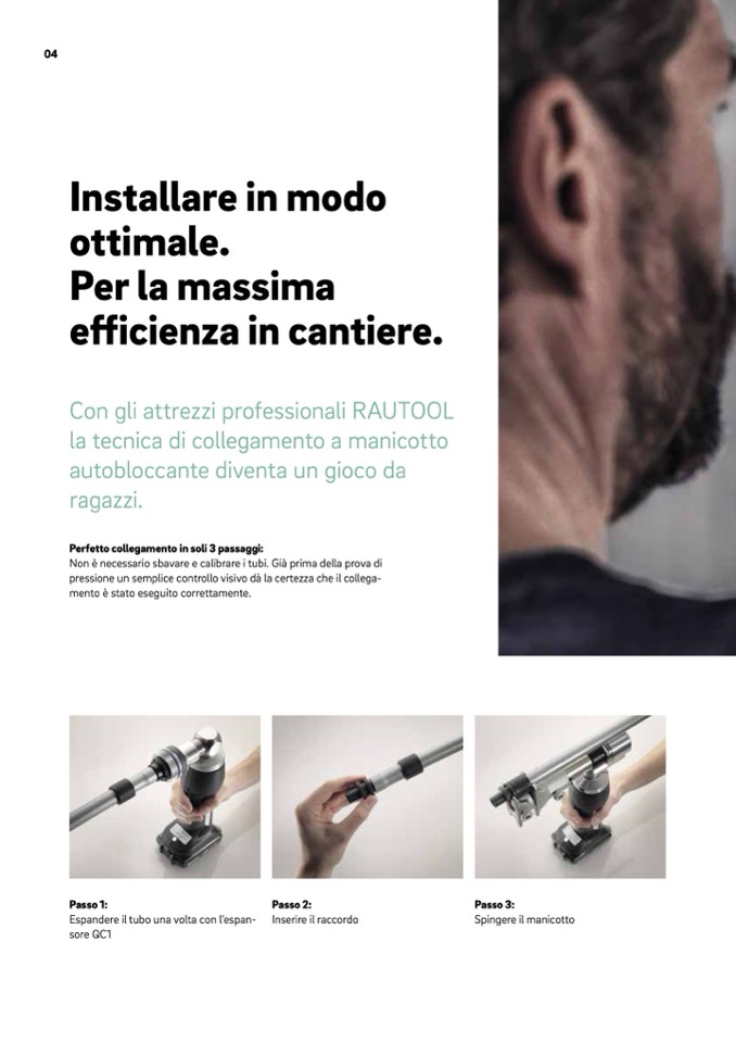 Espandere il tubo una volta con l’espan- Inserire il raccordo