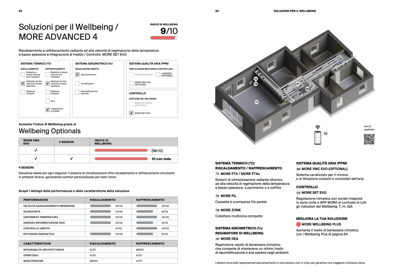 Soluzione ideale per ogni stagione: il sistema di climatizzazione offre riscaldamento e raffrescamento simultanei