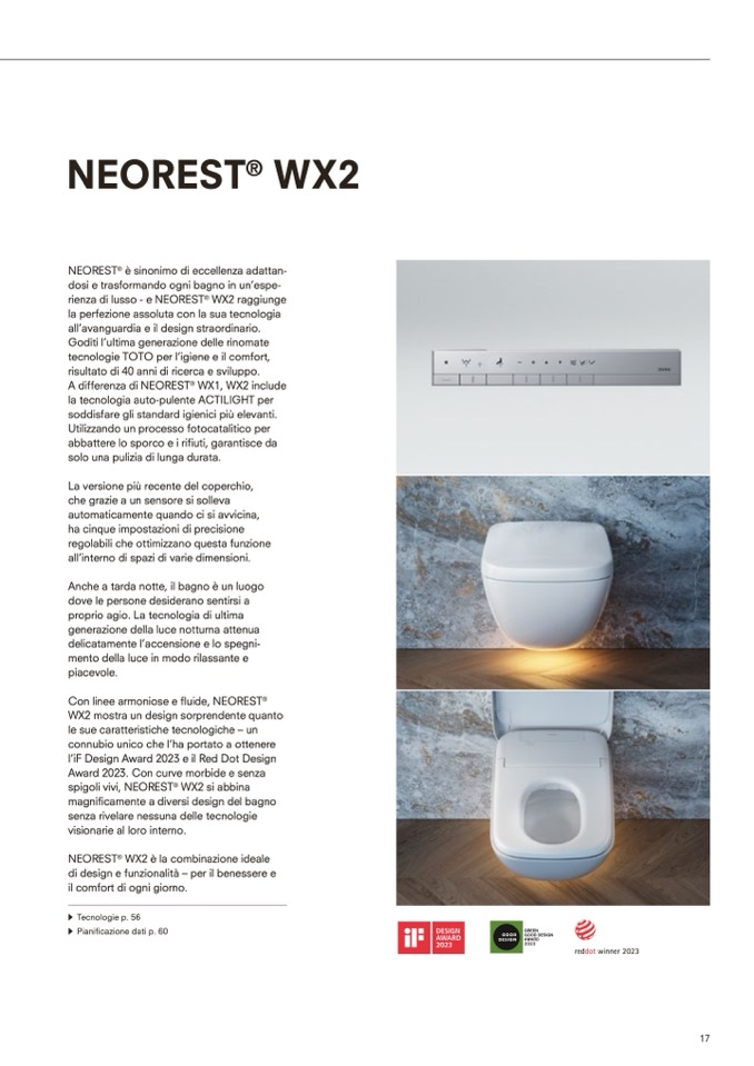 tecnologie TOTO per l’igiene e il comfort,